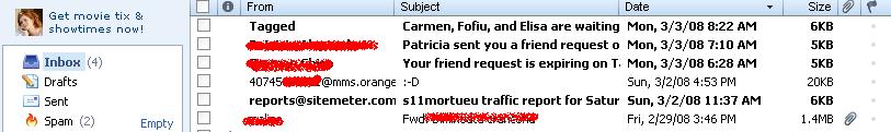 orice tip de spam ! insa cel mai stresant dupa parerea mea ii cel din MAIL. Deci nu stiu care-i faza cu TAGGED , si nici nu m-am documentat pentru ca pur si simplu nu-mi pasa dar primesc tot mai multe mailuri cum ca persoane din lista mea m-au taguit`. Tin sa va anunt ca sa nu ma mai taguiti ca ma doare fix in batatoru de snitele de chestia asta, si incetati cu invitatile aiurea pe nu stiu ce site-uri gen haicinci. Acele site-uri sunt pentru persoane care sunt rude cu Quasimodo si nu au suficienta materie cenusie sa aghete o fata/un baiat.