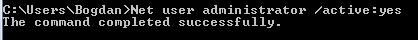 Il accesezi si scrii urmatoarea linie : “Net user administrator /active:yes” | Daca totul ai facut bine trebuie sa iti dea urmatorul mesaj: