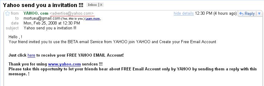 Degeaba e acolo advertise@yahoo.com , si eu va pot trimite mail si va arata ca l-ati primit de la admin@nasa.gov ; atentie mare, pentru ca daca esti destept, poti sta si fara Antivirus pe calc care si asa numa iti manca din resurse.
